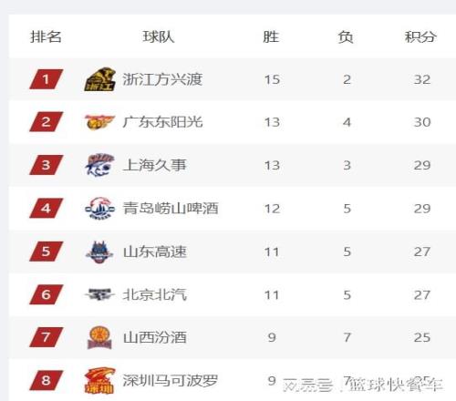 CBA最新积分榜出炉!广东逆袭重回第2,北京第6,辽篮第11