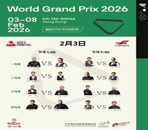 2026年2月3日至8日,世界斯诺克巡回赛(WST)排名赛——斯诺克世界大奖赛2026将在中国香港启德体育园回归。