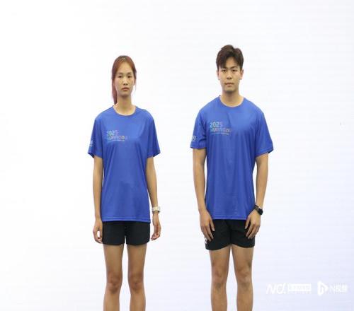 服装正面印有动态线条风格的“2025 HUANGPU”字样,线条灵感来源于精密芯片的电路纹理,彰显了黄埔作为粤港澳大湾区科技创新引擎的定位。