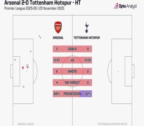 热刺本赛季两场联赛上半场0射门,为英超唯一一队